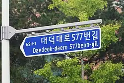Дорожный указатель на хангыле и латинице в Республике Корея