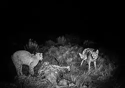 - ↑ Fedriani, J. M.; Fuller, T. K.; Sauvajot R. M. & York, E. C. (2000). Competition and intraguild predation among three sympatric carnivores. Oecologia. 125 (2): 258–270. Bibcode:2000Oecol.125..258F. doi:10.1007/s004420000448. hdl:10261/54628. PMID 24595837. S2CID 24289407.