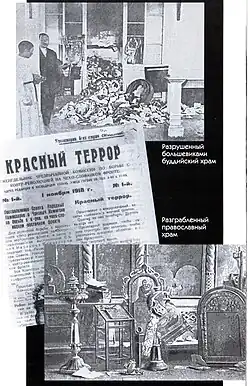 Кра́сный терро́р — комплекс карательных мер, проводившихся большевиками в ходе Гражданской войны в России (1917—1922) против социальных групп, провозглашённых классовыми врагами, а также против лиц, обвинявшихся в контрреволюционной деятельности. Служил средством устрашения как антибольшевистских сил, так и не принимавшего участия в Гражданской войне населения[4][5]. Террор и насилие большевики широко использовали против классовых врагов раньше, ещё до официального провозглашения декрета от 5 сентября 1918 года «О красном терроре»[6].