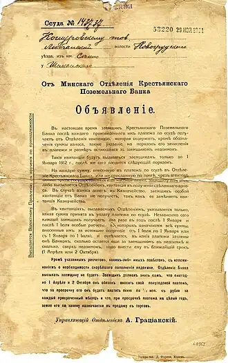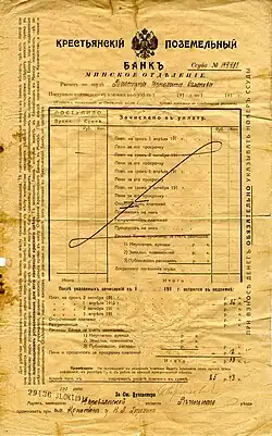 - ↑ Скалон В. Ю. Крестьянский поземельный банк // Энциклопедический словарь Брокгауза и Ефрона : в 86 т. (82 т. и 4 доп.). — СПб., 1890—1907.