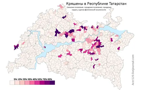 Кря́шены (тат. керәшеннәр от рус. крещён; крещёные тата́ры, тат. керәшен татарлары) — этноконфессиональная группа в составе волго-уральских татар[6], исповедуют православие. Компактно проживают, в основном, в Татарстане, в небольшом количестве в Башкортостане, Удмуртии, Челябинской области, а также Самарской и Кировской областях.