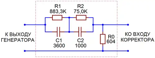 Существуют четыре базовые, равнозначные конфигурации петли частотнозависимой обратной связи (R1C1R2C2), охватывающей ОУ. В приведённом варианте («цепь А» по Липшицу) R1C1=T1=3180 мкс, R2C2=T2=75 мкс, (R1||R2)(C1+C2)≈T3=318 мкс[98]. Ёмкость C0 совместно с R0 образует не предусмотренный стандартом ФВЧ с частотой среза 3,3 Гц, препятствующий усилению напряжения смещения ОУ; отключаемый ФВЧ «поправки МЭК» R3C3 выполнен пассивным. Так как коэффициент усиления ОУ в неинвертирующем включении никогда не опускается ниже единицы, то для подавления прохождения на выход ультразвуковых частот в схему дополнительно введён пассивный ФНЧ R4C4 с частотой среза 63 кГц[89]. Для компенсации затухания, вносимого этим фильтром в звуковом диапазоне, постоянная времени (R1||R2)(C1+C2) выбрана несколько отличной от стандартных 318 мкс.