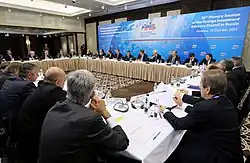 Кру́глый стол — общество, конференция или собрание в рамках более крупного мероприятия (съезда, симпозиума, конференции). Используется в двух смыслах — как свободная конференция разнородных участников для непосредственного обсуждения определённых проблем (в частности, конфликтов) и — реже — как закрытое общество избранных, принимающее в кулуарах важные решения.