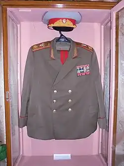 Рабочий китель и фуражка Маршала Н. И. Крылова (экспозиция историко-краеведческого музея имени Н. И. Крылова в с. Вишнёвое)