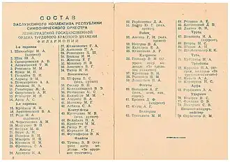 | Коллективы | ЗКР АСО Ленинградской филармонии |