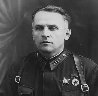 - ↑ В ряде публикаций указывается о награждении только одним орденом Красного Знамени, причём год награждения указывается как 1922, так и 1933-й.