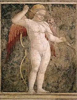 В “Аллегории весны» Боттичелли (1482 г.), также известной под итальянским названием «La Primavera», Купидон изображен с завязанными глазами, стреляющим из лука, расположенным над центральной фигурой Венеры[19].