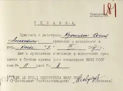 - 1 2 Довідка-відгук для розгляду справи по реабілітації Кустоляна Євгена Олексійовича від 16 квітня 1956 року. (укр.). avr.org.ua. Дата обращения: 7 декабря 2021. Архивировано 7 декабря 2021 года.