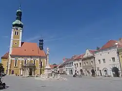 - Церковь Святого Сердца — неоготика, построена в 1894 году. Рядом с ней установлена колонна Св. Троицы (барокко, 1712) в память о жертвах чумы.