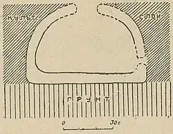 Определено, что на начальной стадии существования поселение было слабо укрепленным, южные и восточные части площадки использовались для проживания. На рубеже эр поселение уничтожено в результате пожара, после чего было существенно перестроено: площадка расширялась за счет сбрасывания культурного слоя на склоны, появились деревянно-земляные укрепления. Обнаружены фрагменты 5 наземных жилищ столбовой конструкции. Два из них, лучшей сохранности, имели размеры 4,5 х 9,5 м и 4 х 8, 3 м. Отапливались очагами круглой или овальной формы, обложенными по краям глиняным валиком или камнями. Размеры очагов 0, 9 х 1,35 — 1,1 х 1, 4 м.