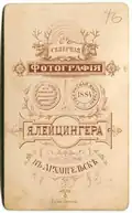 Оборотные стороны фотографий, сделанных в салоне Якова Лейцингера. Архангельск. Начало XX века | ||||||||||