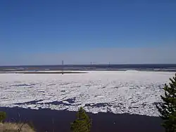 Лена отличается от других рек России своим ледовым режимом и мощными заторами льда. Прочный и толстый лёд на реке образуется в условиях чрезвычайно холодной, продолжительной и малоснежной зимы. Весенний ледоход обладает большой мощью, часто сопровождается заторами льда и затоплением значительных территорий. Раньше всего, в конце апреля, начинается весенний разлив в районе Киренска — на верхней Лене — и, постепенно сдвигаясь на север, наступая на ещё скованную льдом реку, доходит в низовья в середине июня. Вода поднимается во время разлива на 6—8 м над меженным уровнем. В низовьях подъём воды достигает 18 м[17].