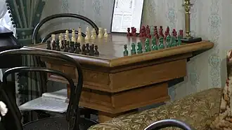 Ленин продолжал активно играть в эмиграции. Он просил свою мать переслать ему шахматы из России, но, получив их в феврале 1910 года, жаловался в ответном письме, что играет редко, поэтому совсем разучился играть[58]. Последний раз Дмитрий Ульянов играл со старшим братом в 1903 году в Женеве. Дома у него не оказалось шахмат, поэтому играли в кофейне. Играли четыре с лишним часа одну партию.
