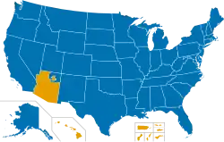 По состоянию на март 2023 г.следующие штаты и территории не соблюдали летнее время: Аризона, Гавайи, Американское Самоа, Гуам, Северные Марианские острова, Пуэрто-Рико и Виргинские острова..[10]