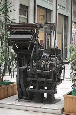 Линоти́п (от лат. linea — «линия» и греч. τύπος — «отпечаток»[1]) — наборная машина для отливки из гарта целых строк текста. Изобретён в США Отмаром Мергенталером; первая модель, названная им «Попытка», была построена в 1884 году[2], а усовершенствованная строкоотливная машина с автоматической выключкой строк клиньями — в 1885 году[3]. Линотип широко использовался в полиграфии до появления технологии фотонабора и компьютерной вёрстки. Строки текста, отлитые на линотипе, формируют макет страницы для последующей печати методами высокой или глубокой печати на тигельных и ротационных машинах.