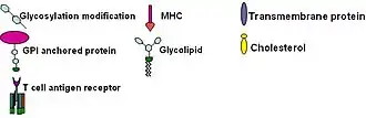 - ↑ Thomas S., Kumar R. S., Casares S., Brumeanu T. D. Sensitive detection of GM1 lipid rafts and TCR partitioning in the T cell membrane. (англ.) // Journal of immunological methods. — 2003. — Vol. 275, no. 1-2. — P. 161—168. — PMID 12667680.