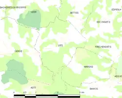Коммуна расположена приблизительно в 670 км к югу от Парижа, в 120 км юго-западнее Тулузы, в 22 км к юго-востоку от Тарба[1].