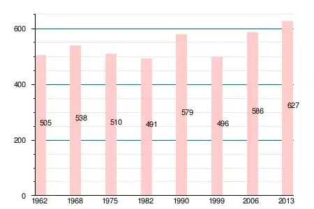 Население коммуны в 2011 году составляло 612 человек[6], в 2012 году — 627 человек[7], а в 2013-м — 627 человек[5].