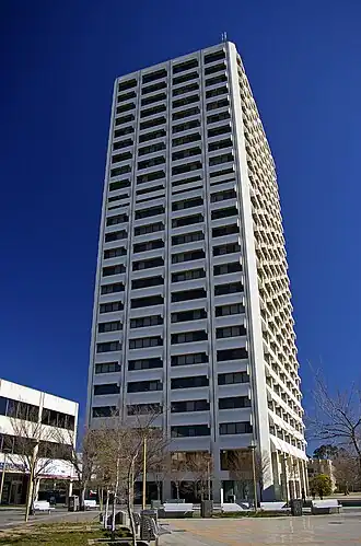 - ↑ Towell, Noel; Clisby, Meredith; Page, Fleta (5 марта 2014). Welcome to Woden: tallest tower to empty as public service job cuts hit hub hard. The Canberra Times. Fairfax Media. Архивировано 5 марта 2014.