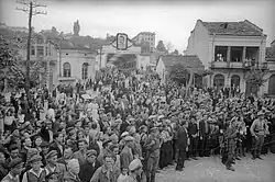 5 июля 1877 г. отряд полковника Жеребкова занял город. Было организовано временное управление. Малочисленный гарнизон подполковника Бакланова располагал вместе с сотней 23-го казачьего полка только двумя орудиями. 15 июля 1877 отряд Рифата-паши в составе 4000 человек пехоты при шести орудиях, посланный Османом-пашой, занял Ловеч. После этого 1500 жителей города и окрестностей погибло от ятаганов турок. Рифат-паша создал целую систему укреплений на Киримзитепе (ныне Стратеш). 17 августа крупные русские силы, которые возглавил генерал-майор А. К. Имеретинский (Багратион), были двинуты на Ловеч. Учитывая укрепления противника перевес русского войска, численностью около 20 тысяч человек и 98 орудий, был небольшой. Противник располагал 15-тысячным гарнизоном под командой Рифат-паши, при современном стрелковом и артиллерийском вооружении. Атака проводилась 22 августа двумя колоннами: левой — генерала М. Д. Скобелева[7] и правой — генерала В. М. Добровольского. Главная атака на турецкие позиции была предпринята Скобелевым, сначала с 5000 солдат, затем с 9000, и турки были оттеснены от Ловчи, потеряв 5200 чел. убитыми. Потери русских составили 1500 чел. убитыми и ранеными. См. Плевна.