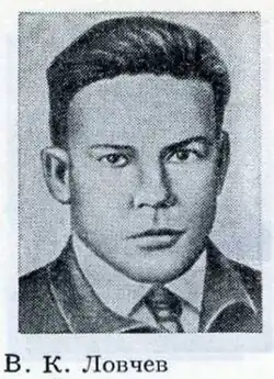 - Указом Президиума Верховного Совета СССР от 8 сентября 1943 года за образцовое выполнение боевых заданий командования на фронте борьбы с немецко-фашистскими захватчиками и проявленные при этом мужество и героизм гвардии младшему лейтенанту Ловчеву Виктору Константиновичу посмертно присвоено звание Героя Советского Союза.