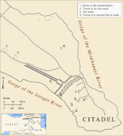 Окружавший цитадель город обхватывал территорию около 25 гектар, также ограждённую стенами, от которых сохранились лишь остатки фундаментов.