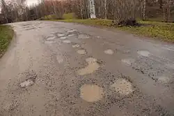 Лужи на дорогах и тротуарах являются следствием грубых нарушений правил дорожного строительства, заключающихся в отсутствии дренажа дорожного основания и/или несоблюдения принципа поперечного уклона дорожного покрытия. При подобных дефектах вода скапливается на поверхности вместо своевременного отведения в дренажные системы.