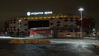 Домашняя арена клуба «Спартак» (Москва). Построен на территории бывшего Тушинского аэродрома. Принимал матчи Кубка конфедераций 2017 года и чемпионата мира 2018 года[9][10][11], во время этих турниров согласно требованиям ФИФА и УЕФА по именованию стадионов носил название «Спарта́к»[2]. Вмещает 45 496 зрителей[7], является вторым по вместимости футбольным стадионом в Москве после «Лужников» и четвёртым по этому показателю в России. Открыт 5 сентября 2014 года матчем «Спартака» с сербской «Црвеной звездой» (1:1)[5]. Лучший российский стадион по версии британского сайта money.co.uk, а также делит 11—15 места в рейтинге среди всех европейских стадионов[12].