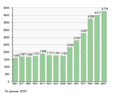 Население составляет 5244 человека (2012), плотность населения составляет 1197 чел./км². Занимает площадь 5 км². Почтовый индекс — 22040. Телефонный код — 031.