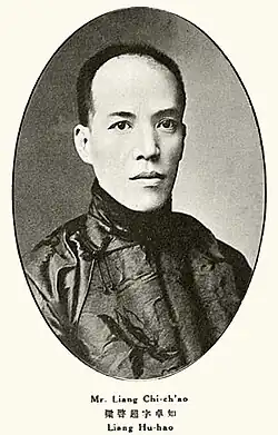 Лян Цичао (кит. трад. 梁啟超, упр. 梁启超, пиньинь Liáng Qǐchāo[Комм. 1]; 23 февраля 1873 — 19 января 1929) — китайский философ, историк философии, учёный, литератор, государственный и общественный деятель, один из лидеров либерального реформаторского движения в Китае конца XIX — начала XX века (так называемые «Сто дней реформ»). Ученик известного философа Кан Ювэя, автор первой его биографии (1901). Отец известного китайского архитектора Лян Сычэна; трое сыновей Лян Цичао стали членами Китайской академии наук.
