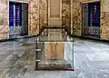Снаружи здание кажется прямоугольным, однако изнутри можно увидеть, что на самом деле оно восьмиугольное. Фасад украшен геометрическим орнаментом и затейливым растительным узором. Мавзолей венчает большой купол, выложенный плиткой голубого цвета. Перед главным входом находится восемь колонн. Внутренняя площадь мавзолея составляет 257 квадратных метров. Внутри находится гробница из белого мрамора, на которой высечены строки из стихотворений поэта. К мавзолею примыкает колоннада, завершающая комплекс[5].