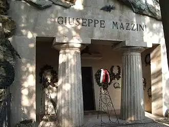 В 1882 году в Генуе в честь Мадзини был воздвигнут памятник. Статуя Мадзини стоит на высокой колонне из белого мрамора, на ступенях пьедестала сидит плачущая Италия, а возле неё юноша держит знамя с девизом «Dio е popolo».