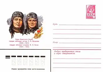 - ↑ Полк, имевший исключительно женский состав, был сформирован в октябре 1941 года. В феврале 1943 года 588-й полк был преобразован в 46-й гвардейский ночной бомбардировочный авиационный полк. Имея на вооружении лёгкие самолёты По-2 (У-2), боевые экипажи полка сделали в общей сложности 24 тысячи боевых вылетов, сбросили на врага 3 тысячи тонн бомбового груза. За активное участие в освобождении Тамани полк получил почётное наименование Таманского. Был награждён орденами Красного Знамени и Суворова III степени и отмечен 22 благодарностями Верховного Главнокомандования. За войну полк потерял 31 лётчицу, пять из которых посмертно были удостоены звания Герой Советского Союза. В общей сложности 23 лётчицы получили звание Героя Советского Союза, две — Героя России.