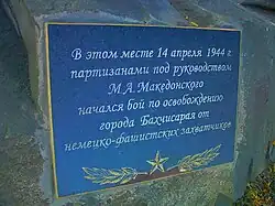 - Македонский М. А. Пламя над Крымом (воспоминания командира Южного соединения партизанских отрядов Крыма). 3-е изд., пер. и доп. Симферополь, 1969. — 304 с.