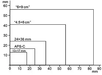 Однако кадр, отличающийся от стандартного 24×36 мм, не получил широкого распространения, в том числе по причине несовпадения с размером рамок для слайдов «Kodachrome» и шагом автоматических резаков[26]. Малоформатная фотоаппаратура занимает промежуточное положение между среднеформатными камерами и фотоаппаратами миниатюрных форматов для плёнок 24 мм (APS) и 16 мм[* 9]. При этом первые, давая более высокое качество изображения, получили распространение в основном в студийной и постановочной фотографии из-за громоздкости и недостаточной оперативности. Телеобъективы и вариообъективы для малоформатной аппаратуры гораздо компактнее своих среднеформатных аналогов с той же светосилой, что зачастую немаловажно в новостной и спортивной фотожурналистике[4]. В то же время малоформатный кадр достаточно велик, чтобы обеспечивать качество, приемлемое в газетной и даже журнальной полиграфии. На протяжении всей своей истории малоформатная аппаратура была самой оснащённой устройствами автоматики и дополнительным оборудованием, в том числе сменными объективами[27].