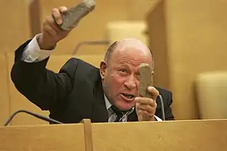 В 2003—2007 годах на выборах в Государственную думу по партийным спискам прошёл депутатом в Государственную Думу Российской Федерации четвёртого созыва. Во время предвыборной кампании отметился в драке на телевизионных дебатах в рамках программы Савика Шустера «Свобода слова»[5].