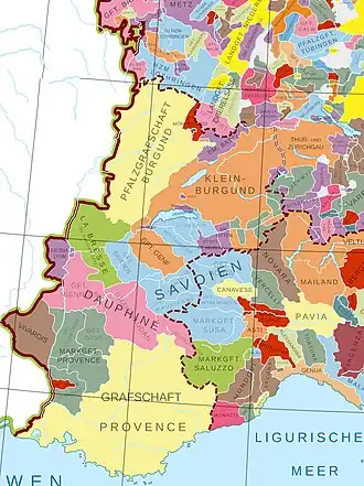 ![]() Маркграфство Монферрат (голубым) в 1494 году |