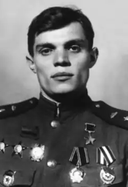 - ↑ Должность и воинское звание на дату представления к присвоению звания Героя Советского Союза.
