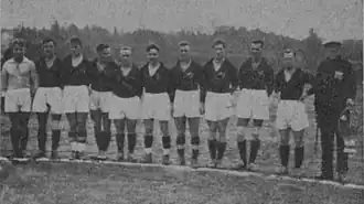 ↑ имеется в виду сборная сильнейшего состава без формальных ограничений — в отличие от второй, третьей и т. д. (дублёров), а также ведомственных (например, сборной профсоюзов или военного ведомства)
