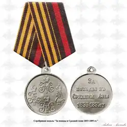 - 1 2 Медаль «За походы в Средней Азии», бронза. Сайт «Награды императорской России 1702—1917 гг.». Дата обращения: 15 ноября 2012. Архивировано 8 января 2013 года.