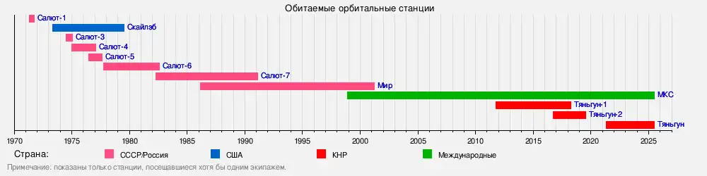 Тяньгун (орбитальная станция)Тяньгун-2Тяньгун-1Международная космическая станцияМир (орбитальная станция)Салют-7Салют-6Салют-5Салют-4Салют-3СкайлэбСалют-1