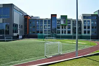 Рядом с этим учебным корпусом расположено футбольное поле с искусственным покрытием и легкоатлетической дорожкой.