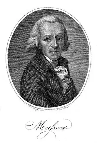 - 1 2 Wurzbach D. C. v. Meißner, August Gottlieb (нем.) // Biographisches Lexikon des Kaiserthums Oesterreich: enthaltend die Lebensskizzen der denkwürdigen Personen, welche seit 1750 in den österreichischen Kronländern geboren wurden oder darin gelebt und gewirkt haben — Wien: 1856. — Vol. 17. — S. 301.