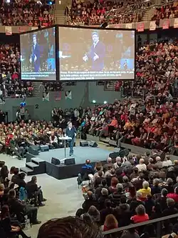 В апреле 2017 года привлёк к себе внимание использованием в предвыборной кампании новейших технологий — веб-радио и даже собственных голографических изображений на митингах в Нанте, Клермон-Ферране, Монпелье, Гренобле, Нанси и Реюньоне[11].
