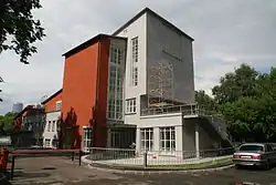 (Москва, ул. Плющиха, 64). Находится на участке при пересечении улицы Плющихи и 2-го Труженикова переулка, составлен из нескольких простых геометрических объёмов, динамически развёрнутых в угловом пространстве участка: его главную диагональную ось фиксирует отдельно выделенный компактный цилиндрический вестибюль главного входа с охватывающими его дугами лестниц, за которым вырастает доминирующий массив зрительного зала с проходными коридорами-фойе, получивший форму четверти цилиндра. Боковые прямоугольные корпуса примыкают по Плющихе и 2-му Труженикову переулку.