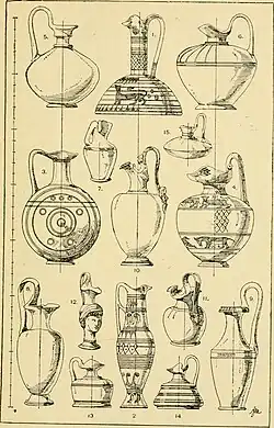 - ↑ Arnold B., Blümner H., Deecke W., Jan K. von, Julius L., Milchhoefer A., Müller A., Richter O., Rohden H. von, Weil R., Wölfflin E. Denkmäler des klassischen Altertums zur Erläuterung des Lebens der Griechen und Römer in Religion, Kunst und Sitte (нем.) / K. A. Baumeister. — München, Leipzig: R. Oldenbourg, 1885. — Bd. I (A—I). — S. 491—492. — 771 S.