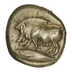 - 1 2 3 4 Булатович С. А. О классификации и хронологии электровых монет Кизика // Нумизматика античного Причерноморья : Сборник научных трудов / Ред. Янин В. Л., Булатович С. А., Дзис-Райко Г. А., Охотников С. Б., Шелов Д. Б. — Киев: Наукова думка, 1982. Архивировано 25 августа 2019 года. Со ссылкой на работы К. Реглинга и других исследователей.