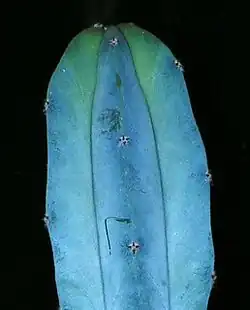 Поверхность стеблей, особенно молодых, — голубовато-зелёная, будто покрытая голубым инеем[3][4].