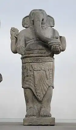 Свежую струю в тямское искусство привнесло правление Индравармана II, принявшего буддизм махаяны[51]. Он построил монастырский комплекс Донгзыонг в IX столетии, демонстрирующий китайское и яванское влияние. В это время в тямское искусство проникают яванские водяные монстры-макары, чьи многочисленные изображения встречаются по всему Мишону[52]. Другой пример яванского влияния — изображения полубогов, небесных танцовщиц и музыкантов, во множестве созданные тямами[53]. В Мишоне в IX веке по приказу генерала армии Сенапати Пара возведена мандапа, ставшая его религиозным подношением тямским богам[46].