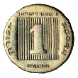 1 прута | 21 | 1,3 | Аверс: якорь; текст «Израиль» на иврите и арабском языке; Реверс: цифра «1»; текст «прута» на иврите; две стилизованных ветви оливы по кругу. |